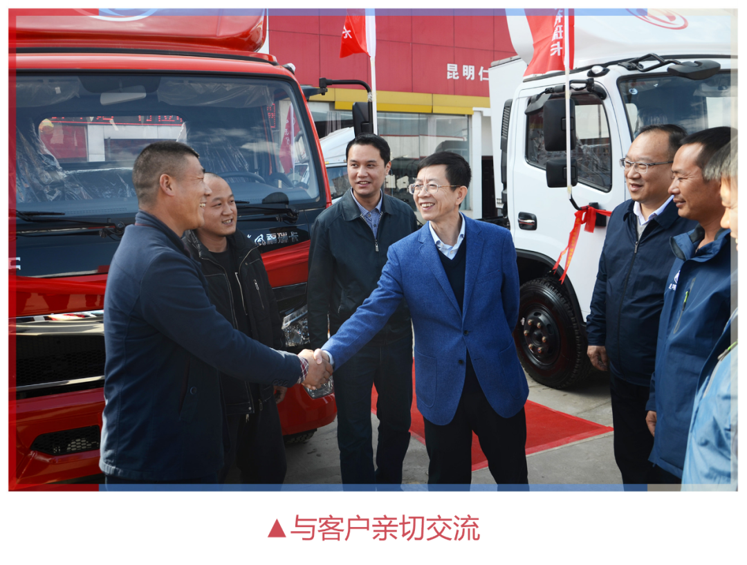 12月2日,东风汽车股份有限公司(以下简称“DFAC”)党委书记郭涛到达昆明,参加了东风福瑞卡昆明地区大客户座谈会。会议开始前,在DFAC工程车事业部总经理熊继海和营销团队,云内动力股份营销公司副总经理李云波的陪同下,郭涛与昆明经销商、客户亲切交谈并参观了东风福瑞卡云南授权经销商昆明仁骏商贸有限公司展厅及展车区。