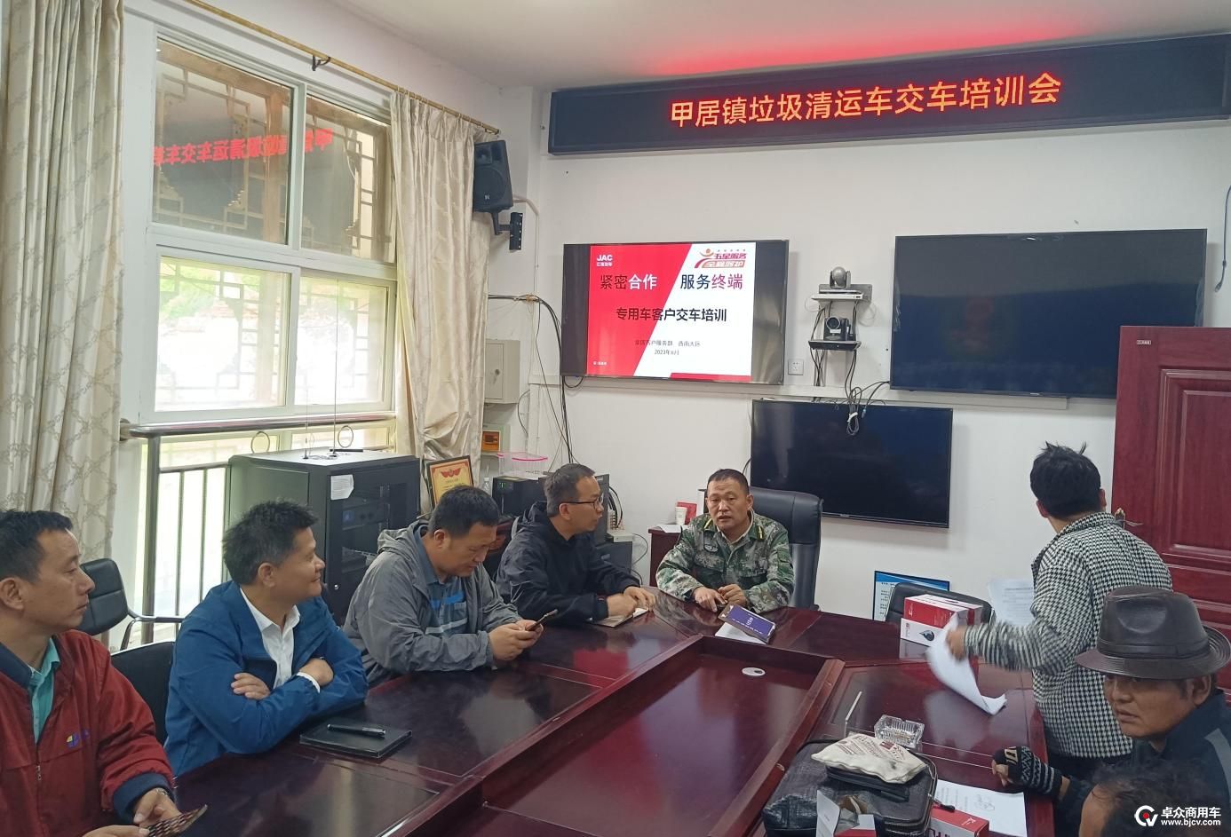 在甲居镇,服务人员一一走访了当地的用车单位,经过多番了解,得知藏族同胞们对于这批江淮1卡国六环卫车均存在使用不够了解,保养维护不清晰的情况。后续,江淮1卡服务人员在巴丹县近20个乡镇走访,了解使用情况,得到的结果与甲居镇是相似的。据此,江淮1卡服务人员决定开展一场国六专项的技能培训工作,指导当地驾驶员熟练操作这批车型,以及如何开展日常养护,并进行难点疑点解释。