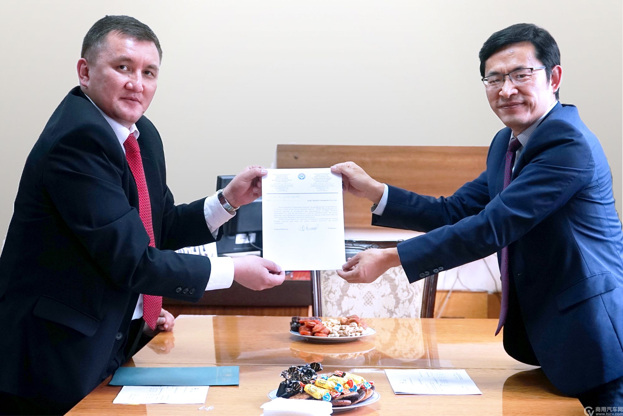 吉尔吉斯共和国外交部外交事务管理局局长Talant SULTANOV向上汽大通总经理王瑞先生赠予感谢信