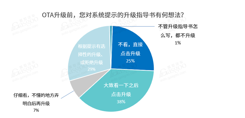 纵观近两年因OTA升级引发的一系列“乌龙”事件或者车辆故障,很多都是由于推送机制设计不合理所引发,导致用户误操作或者操作不当,例如上面提及的蔚来ES8和零跑S01“趴窝”事件。另一方面,则与用户也有一定的关系,据此次调查很多用户在实施OTA升级时,其实都没有看或者仔细看升级指导书。