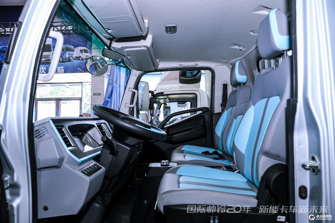这套亮点多又实用的混动系统与帅铃S系驾驶室的家族化外观相互融合,如果不是前脸蓝色的Logo和车门上HS6的标牌,或许很难一眼辨认出它混动的身份。环抱式的仪表台也是家族式设计,熟悉帅铃S系油车的卡友肯定不会陌生。但电光蓝内饰和旋钮式换挡机构又明显与燃油车型不同,新能源氛围的科技感更强。