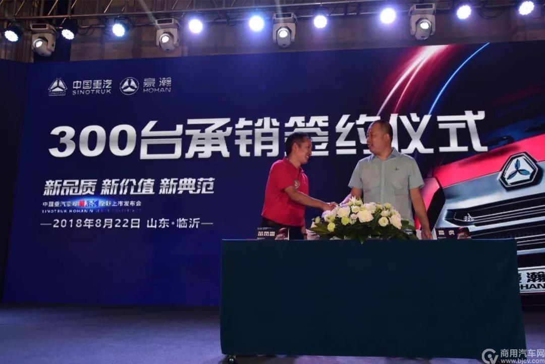 发布会现场完成了承销和订购签约仪式。来自临沂的经销商代表承销300台,郑州区域用户代表杜鹤鸣订购32台。他们认为,新豪瀚系列产品自重轻、承载力强、油耗低、动力强劲、安全可靠,性价比极高,是符合用户需求的赚钱利器。