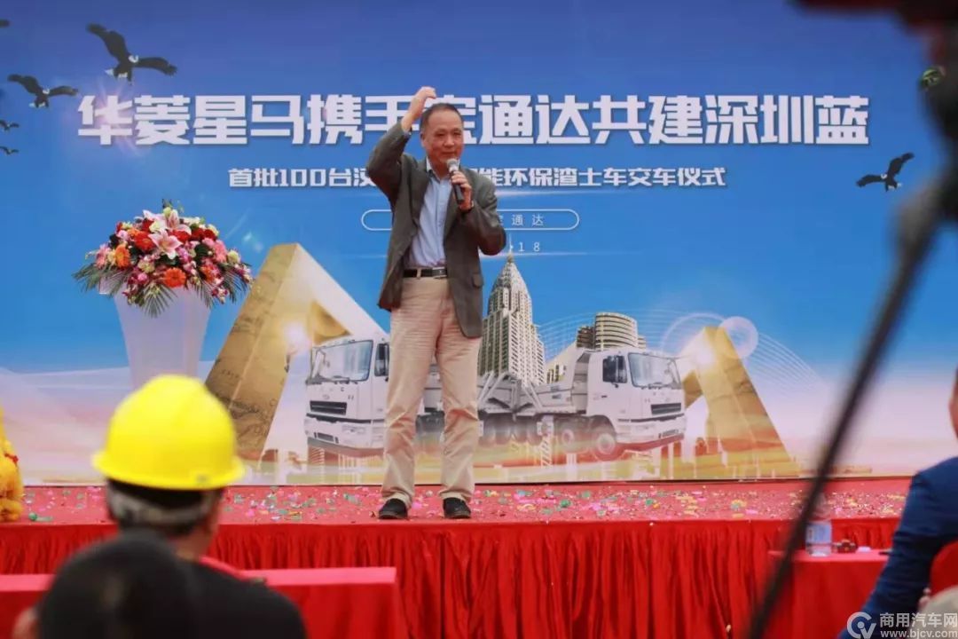 集团公司副总经理何晓生说:“感谢宝通达公司对华菱星马的信赖,多年来双方本着互利互信、合作共赢的原则,精诚合作、共同发展,此次百台车辆的成功交付,也意味着华菱星马与宝通达公司开启发展合作的新篇章。助力‘深圳蓝’,华菱星马已迈出坚实的步伐,今天交付的就是华菱星马最新研发的智能环保渣土车,这批车从绿色环保、智能管理、高效运输等方面实现全方位升级,将用过硬的品质实力,助力宝通达公司事业蒸蒸日上,助力‘深圳蓝’行动。车辆交接后,华菱公司将对所有驾驶员培训新型车辆使用操作,让驾驶员尽快掌握高科技的应用,为企业的顺利运营保驾护航。”