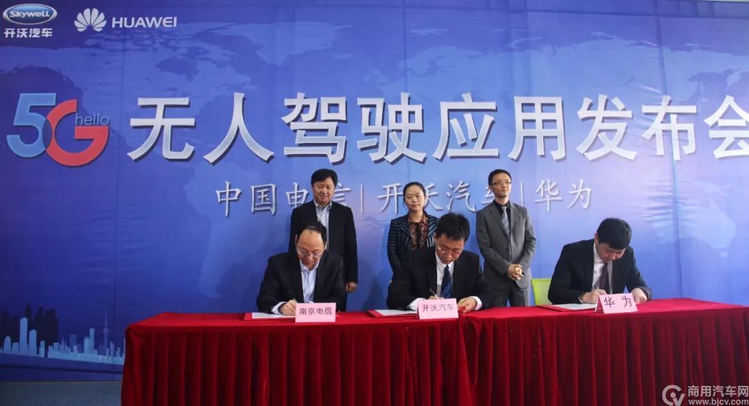 4月29日下午,开沃新能源汽车集团有限公司、中国电信南京分公司和华为技术有限公司在开沃集团签署战略合作协议,三方将发挥各自优势,共同推动5G技术在无人驾驶领域的研发应用。