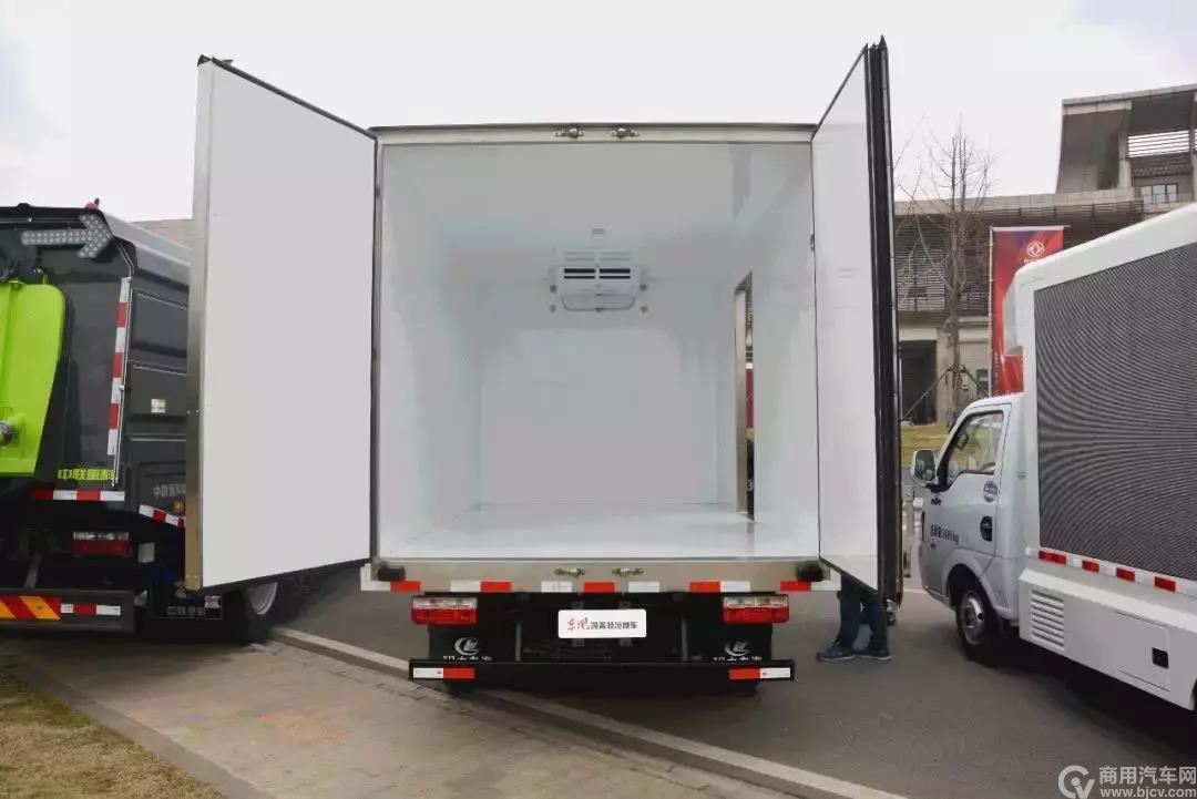 货厢尺寸为4170X2300X2300mm,使得该车的冷藏体积达到22立方米,在同类车型中遥遥领先;车厢右侧设计有侧开门,以及后方的双后门,极大地为用户提高装卸货效率。