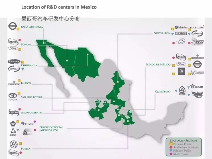 『墨西哥汽车研发中心分布图』