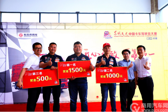 好在功夫不负有心人,截止下午比赛结束时,赛场传来捷报:老司机丁盛、符长扣、丁金忠分别以精湛的车技拿下本次比赛的冠军、亚军和季军,分别获得1500元、1000元、500元现金奖励,并拿到直通半决赛的门票。对于手中这个新鲜的比赛拍档,冠军丁盛表示:“东风天龙KL刚上市,我们就开上了,还是很幸运的,就舒适性与稳定性来说,这次的新品表现确实很优秀,转向轻盈、动力充沛、操控性好、皮实耐用,四点悬浮驾驶室使整车驾驭舒适。今天能拿到冠军,心情很激动,同时也证明了我自己的实力,谢谢东风商用车团队吧”。