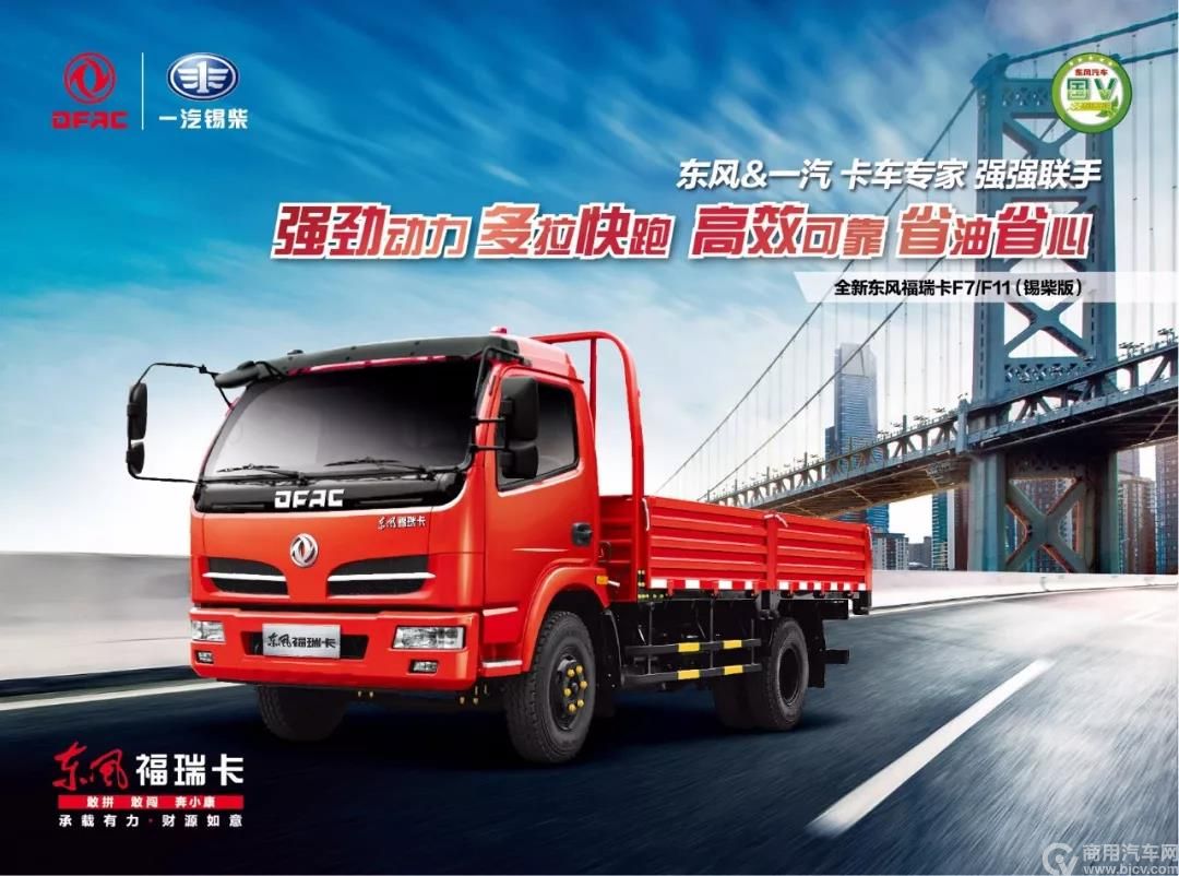 2016年到2017年上半年,东风汽车和一汽解放强强联手,开创性地将一汽解放锡柴的发动机技术和东风优良的整车基因进行融合,统一搭载一汽锡柴康威4102国五发动机,并在前后桥、车架、轮胎和货箱尺寸等方面采取差异化配置,推出在行业内极具竞争力的标杆产品——全新东风福瑞卡F7/F11(锡柴版),两款产品分别定位于物流标载运输和物流重载运输,以“强劲动力、多拉快跑、高效可靠、省油省心”为核心优势,满足了不同客户的承载需求。