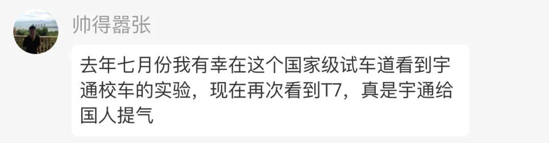 自上市以来,宇通T7已圆满完成抗战胜利70周年阅兵、G20杭州峰会、十九大、连续五次全国两会及四次博鳌论坛、连续两届“一带一路”高峰论坛、两次上合峰会及达沃斯论坛、中非合作论坛、《财富》全球论坛、世界军运会、全国民族运动会等多项大型国事及国际活动与会议的交通服务工作。值得一提的是,新中国成立70周年,宇通T7出色护航授勋仪式、大阅兵、庆祝晚会、国宴等,充分彰显了民族企业的责任担当,也传递出国家对自主品牌的高度认可。特别是在多位党和国家领导人调研考察期间,宇通T7均作为指定用车提供交通保障,成为世界认识和了解“中国制造”的一张移动名片。T7的成功也印证了专注品质、研发创新对于一个品牌及企业的重要性,而这也是宇通一贯坚守的文化。