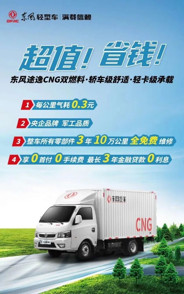 跑市内配送,日行70公里左右,买啥车最合适?当然是买东风途逸CNG双燃料车型了!