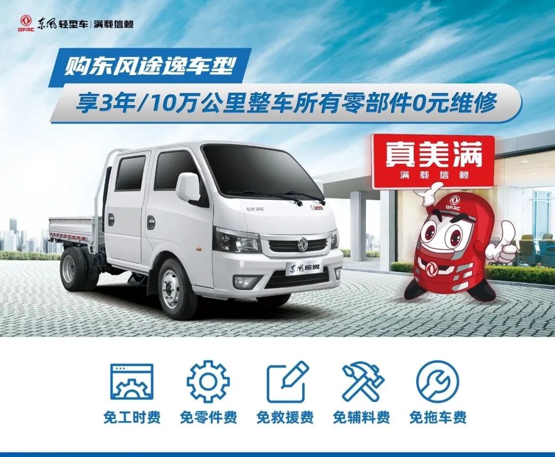 东风途逸CNG双燃料车型,购车3年不操心维修,只有燃气开支,享受整车所有零部件3年或10万公里全免费维修,免工时费、免零件费、免救援费、免辅料费、免拖车费。你尽管开车赚钱养家,我们帮你养车富家!