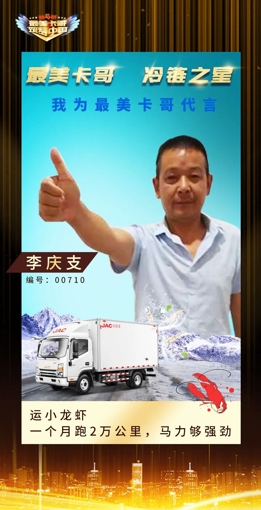 江淮轻卡最美卡哥第四季线上海选赛已进行到一半,截至目前共有超7000名用户报名、4万名用户参与,浏览量超30万人次,我们在各细分领域中都看到了精彩的卡友故事。