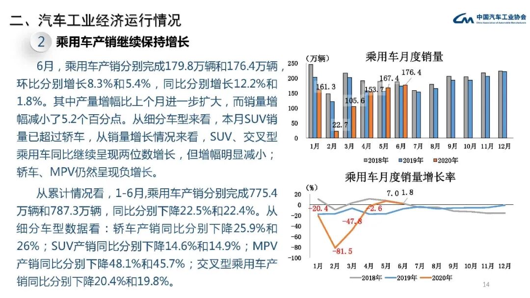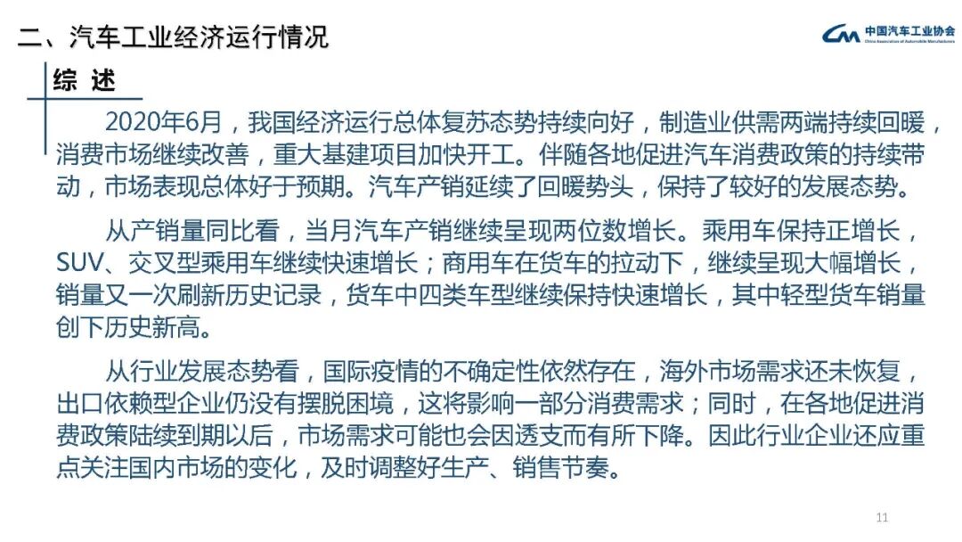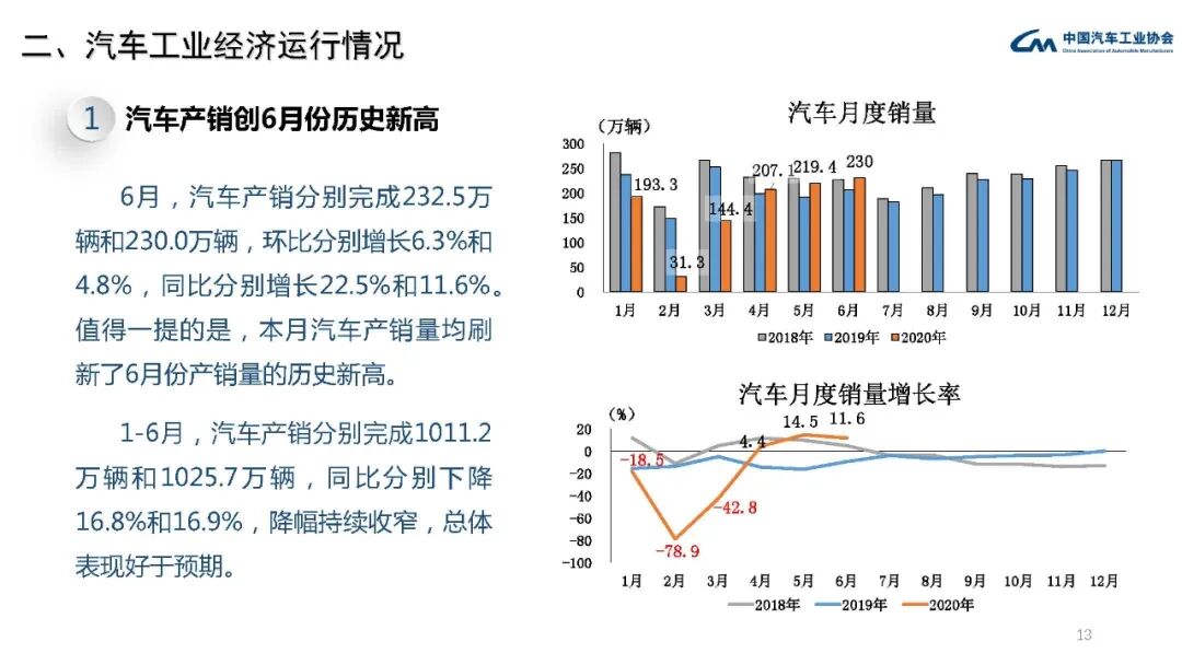 2020年6月汽车工业经济运行情况显示:消费政策持续带动,市场表现好于预期