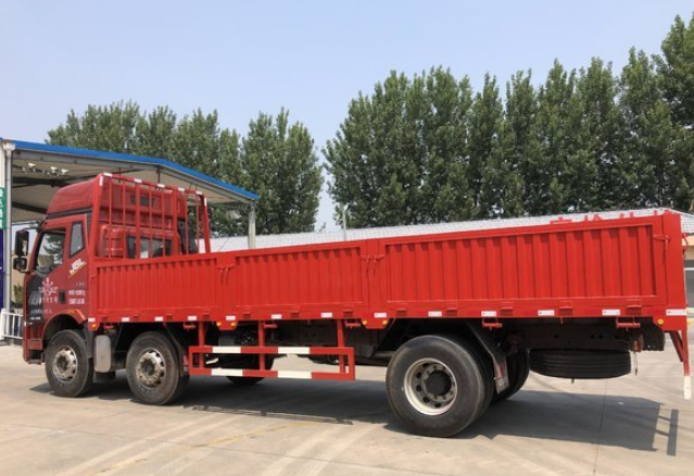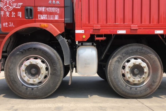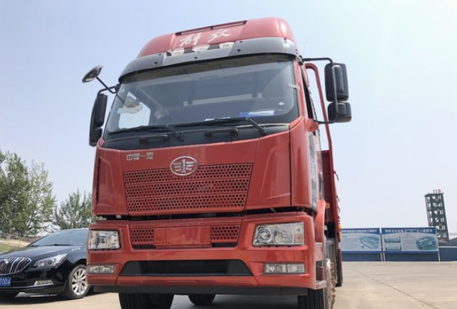 三轴6×2载货车型最大载货总质量可以达到25吨,非常适合运输质量较高的建筑物料等以吨位计算运费的货物。 接下来,官微君要为卡友们介绍一下解放J6L 6×2载货车型在驾驶室舒适度、动力性以及可靠承载能力等方面的基本特点。 紧凑规格驾驶室灵活轻巧 J6L车型依然保持解放车型经典的红色外观设计,高顶位置带有”解放“标识,下面的大尺寸遮阳罩,能够有效阻挡炎热夏季强光的射入,两侧的边角示宽灯,提高行车安全。分体式反光镜便于维护,突出较强的实用性。 中网采用蜂窝式设计,而且是与车身相同的红色融为一体,中间镶嵌的解放车标提升了外观颜值。下层保险杠设有脚踏板,便于驾驶员日常维护车辆,两层孔状橡胶材质能够有效的减少污渍进入驾驶室内保持车辆清洁。一体式大灯带有视觉效果更好的透镜光源,提高车辆在夜晚下的照明效果。 驾驶室后玻璃窗带有J6L以及质惠版专属标识,相比较常见的领航版同款车型来讲,这款车型主打的轻量化以及可靠承载能力。 高顶双卧铺驾驶室舒适度更高 打开车门我们可以清楚的看到车门衬板带有储物格,便于驾驶员放置随身物品;大尺寸菱形车门把手,便于驾驶员上下车辆。 主驾驶采用的是最为简易的气囊减震座椅配置,良好的包裹性提高驾驶员行车的舒适感。车门框两侧带有门把手,保证驾驶员上下车辆更加便捷。 J6L质惠版车型方向盘是四幅式简易方向盘,凸显实用至上的理念。 仪表盘采用了老款J6P车型的相同造型,通体圆形设计表给驾驶员提供充足的视觉效果。 平面式设计的中控台带有自动空调,给驾驶员提供舒适的驾驶环境。上方带有储物格,方便于驾驶员放置随身衣物等生活物品。副驾驶位采用折叠式座椅,大角度折叠可以进一步提高长途行车的舒适性需要。 高顶驾驶室的优势不仅仅体现在双层卧铺舒适度,而且宽敞的空间便于驾驶员驻车时获得更多有效的生活空间。 大柴6缸发动机动力性出色 J6L质惠版车型搭载的是直列六缸大柴CA6DK1-24E5发动机,排放量为7.146L,最大功率240马力,峰值扭矩1000N·m,能够达到国五排放标准。 与之相匹配的是一汽解放CA8TAX手动变速器,头档速比9.569,最高挡速比0.735,最大输入扭矩900N.m。 轻量化车桥配置轻量化特点鲜明 J6L整车标配采用尺寸为12.00R22.5的真空胎,鼓式制动车桥以及轮毂均采用曲面设计,具有较好散热效果的同时轻量化特点也非常显著。 前桥悬挂式采用11片钢板悬挂,保障运输的稳定性和可靠性,立式减震筒能够减少行车颠簸,提升驾驶舒适性。 底盘右侧带有空滤配置,不需要驾驶员再刻意举升驾驶室即可完成日常更换。 底盘的右侧带有300L的钢质油箱,满足500km以内的中长途物流运输需要。原厂配置气驱SCR尿素装置保证尿素喷射更加充分,在环保方面要求更高。 轻量化435驱动桥采用13+7钢板悬挂,主减速比为4.111,轮胎规格为12.00R22.5真空胎,发动机转速为1200rpm时,车速度可达89.5km/h,在综合燃油经济性方面优势明显。 这款车型采用尺寸为7.7x2.46x0.6(m)的栏板式货箱上装,前部的竖立龙门支架保证运输不同货物情况下具有更好的安全作用。 该车型尾部带有上装厂设置的防护栏,起到更好的防护和缓冲效果。