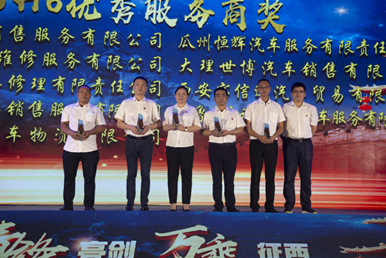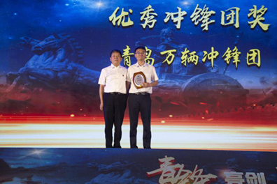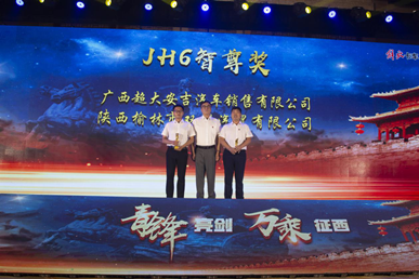 庆典期间,解放品牌为表现优秀的经销商分别颁发了JH6优秀服务商、JH6卓越奖、JH6领航奖、JH6智尊奖四个奖项,鼓励西部区域10000辆目标达成过程中表现优异的团队。随后,一汽解放副总经理、青岛整车事业部总经理、王瑞健将“优秀冲锋团奖”授予青岛万辆冲锋团,表彰该团队无惧挑战,努力提升市场份额,达成万辆销量的佳绩。