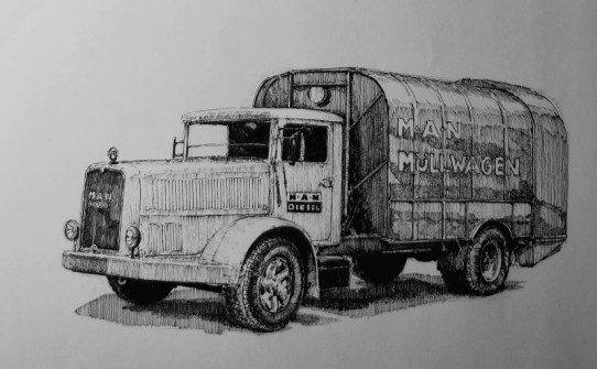 手绘:二十世纪30年代的曼恩垃圾运输车