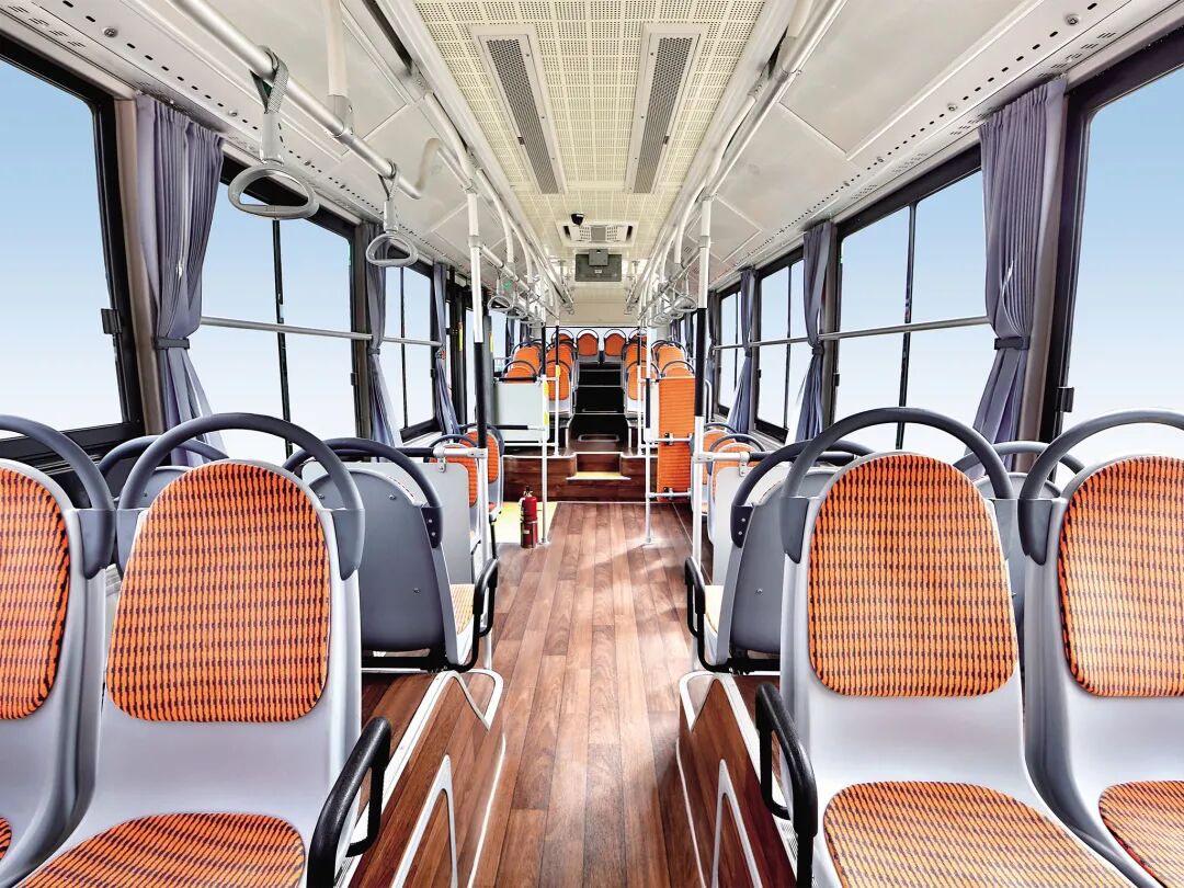 “川流”造型,采用欧洲流行的方基调小圆角设计,融合国际流行设计元素与中国传统美学元素,引领城市公交新风尚。反凹流体切割面手法的感官美学,赋予大灯璀璨酷炫气质,整车流畅大气。 标配豪华大灯和日间行车灯,前围采用全敞式的三块布局,打开检修更方便。后围大灯下沿与保险杠形成独特的U字形,视觉上浑然一体,侧围点缀流动线条,更具灵动飘逸之感,整体品质观感提升,时尚气息扑面而来。 另外,A柱采用暗柱设计,使得前围玻璃和侧围玻璃的衔接过渡更加顺畅,有效改善传统城市公交A柱前倾的视觉效果。 全新第三代仪表台,注塑工艺,质感更佳,通用人机系统平台,驾驶去视野开阔,功能按键布局合理,两条分区点缀,驾驶操作更加轻松方便。车辆采用国际上最严苛的以色列标准,减少行车过程中的各种视野死角,驾驶室前方视野非常广阔。 车辆启动平稳,车厢安静,应用NVH静音技术,在吸声隔音结构设计基础上应用了大量隔音降噪特种材料,切断造影传播渠道,营造出安静的乘坐环境,让乘客的出行更加舒适惬意。 车厢内色彩柔和,温馨,素雅整洁的车顶与木纹地板搭配,让整车空间清爽舒适,大视野的侧窗玻璃,沿途风景一览无遗,多处人性化细节设施让乘客更方便舒适,车上配有自动残疾人轮椅升降板,全车USB,无线WIFI等人性化装置。 蜂窝状侧墙、顶板、重量轻,纹理美观,更有多种风道组合。 车辆采用轻量化设计,从结构轻量化和材料轻量化两方面降低整车自重,带来更低的能耗,减少排放,实现绿色出行,城市环保尽一份力;采用金刚封闭环设计,整车阴极电泳,整车更加坚固安全,车辆防腐能力强,使用年限更长久。 打造更加安全的客车一直是金旅客车设计的核心宗旨,金旅客车采用比国家客车安全法规更严苛的标准,通过多项领先于行业的安全配置,以周全的主动及被动安全防护,为出行保驾护航,专展开发的防火CAN通讯配电盒,消除防火安全死角;进口保险片、智能排水储气筒,发动机舱和设备舱灭火系统,多重安全设计,防范于未然;智能远程监控车联网平台,实时监控,故障预警,让车辆运营管理更加简单高效。 图 | 金旅川流城市客车