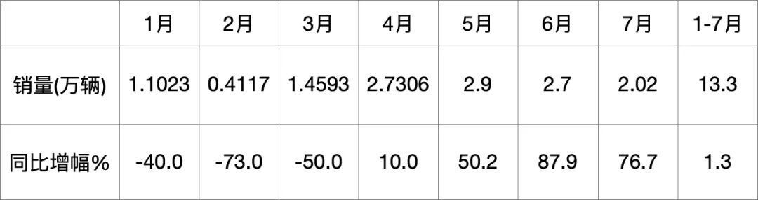 表:2020年7月、1-7月中重型自卸车销量同比及中重卡销量同比(根据中汽协及公开数据)