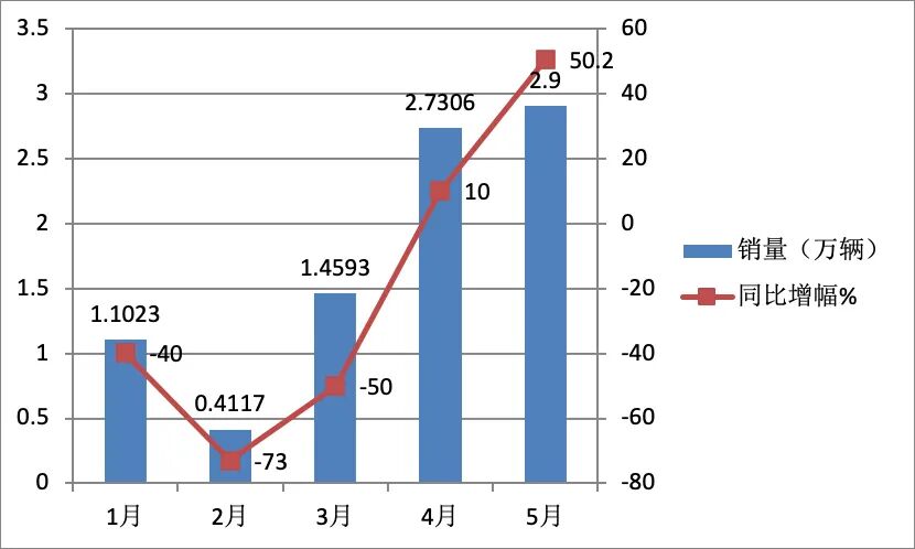 5月,自卸车销售2.9万辆,同比增长50.2%,增幅比4月扩大了40.2个百分点。主要是由于疫情期间压抑的市场需求继续得到释放,国家和地方的新基建项目开工增多,加上国三重型柴油货车淘汰加速,对工程自卸车的需求继续增大,且当月为上半年销量最高月份。