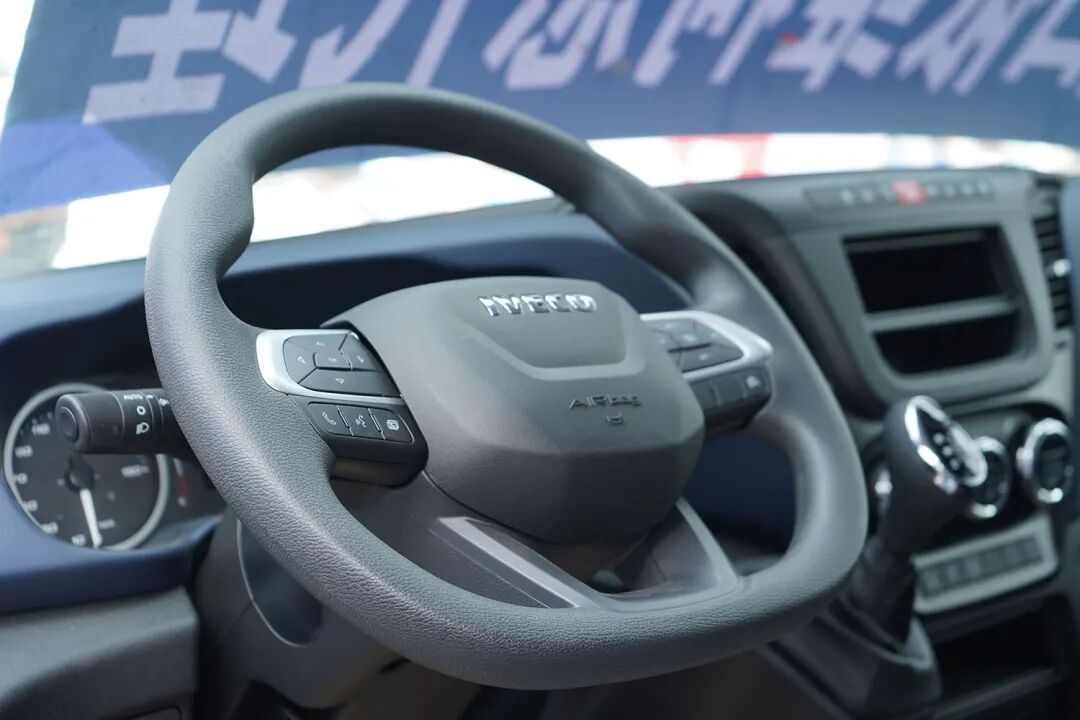 除了满足国六B排放标准的菲亚特F1C 3.0T发动机和依维柯HI-MATIC八速自动档变速箱之外,进口依维柯New Daily国六底盘的方向盘也经过全新设计。其电子助力转向系统配合CITY MODE模式,可以在原有的转向力上再减轻70%,配合可双向调节的多功能按键方向盘,大幅提升了整车的驾驶体验。
