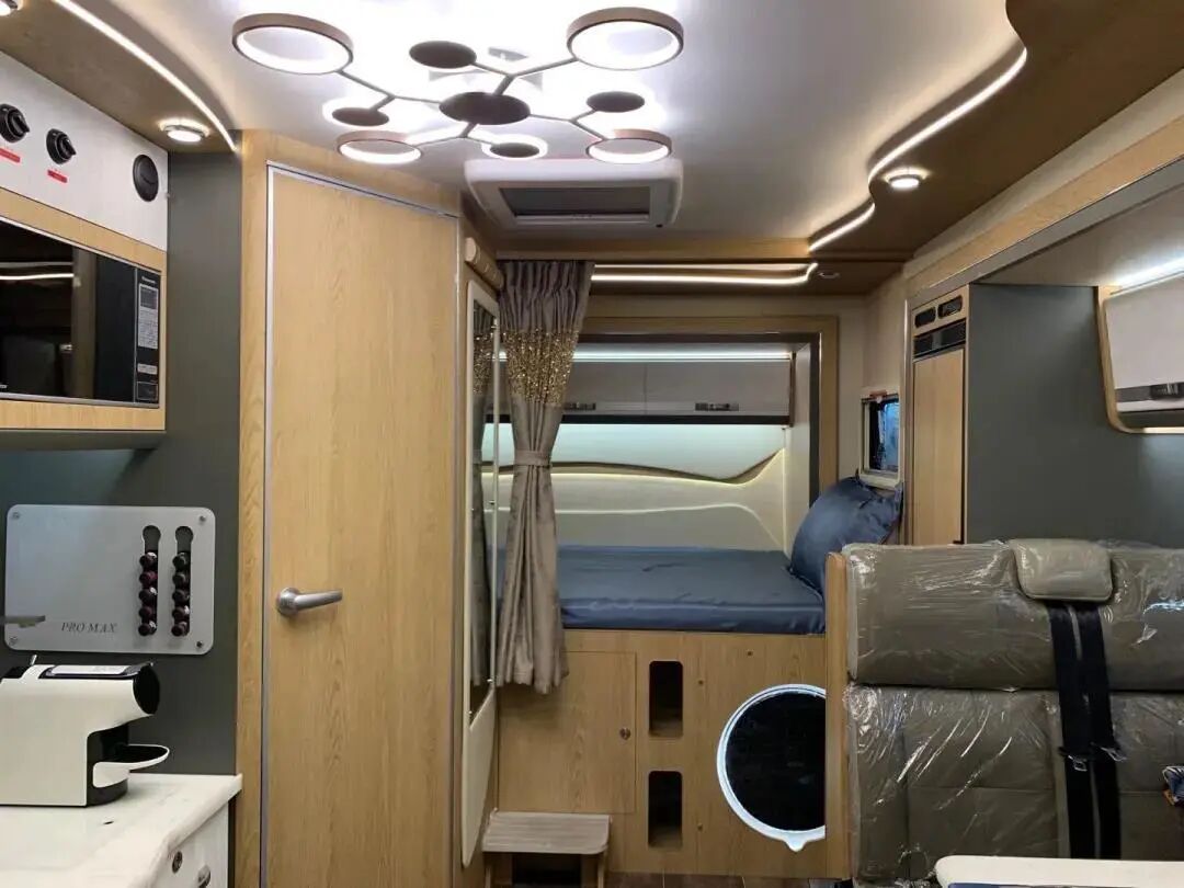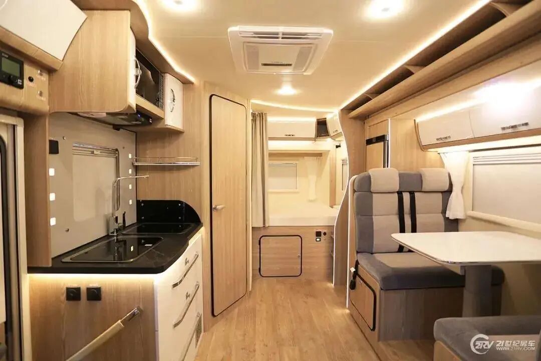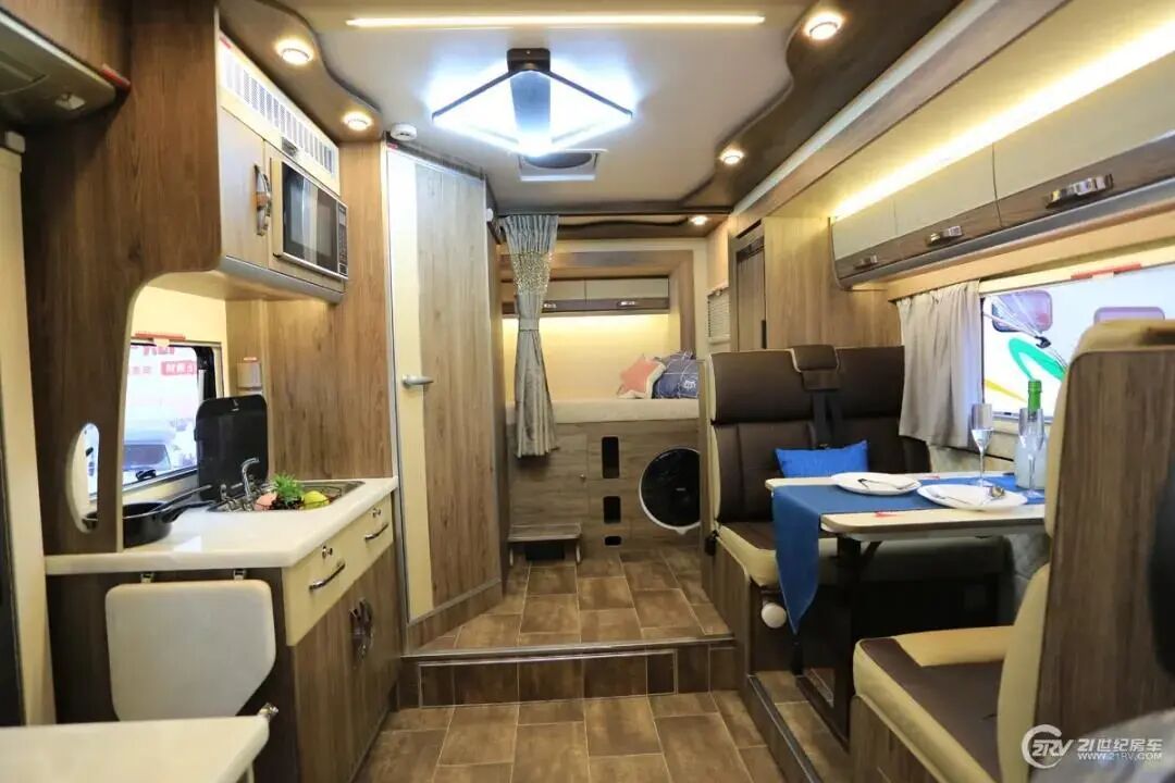 车辆内部使用了比较经典的风格设计,无论是前部的驾驶区域和后部的生活区,都能给人带来温馨的感觉。宇通C630尊享版房车还配备了一个非常实用的功能:行车限高提醒装置,对房车而言,这个功能是非常贴心的,可以让你更加轻松的行驶在城市道路上。