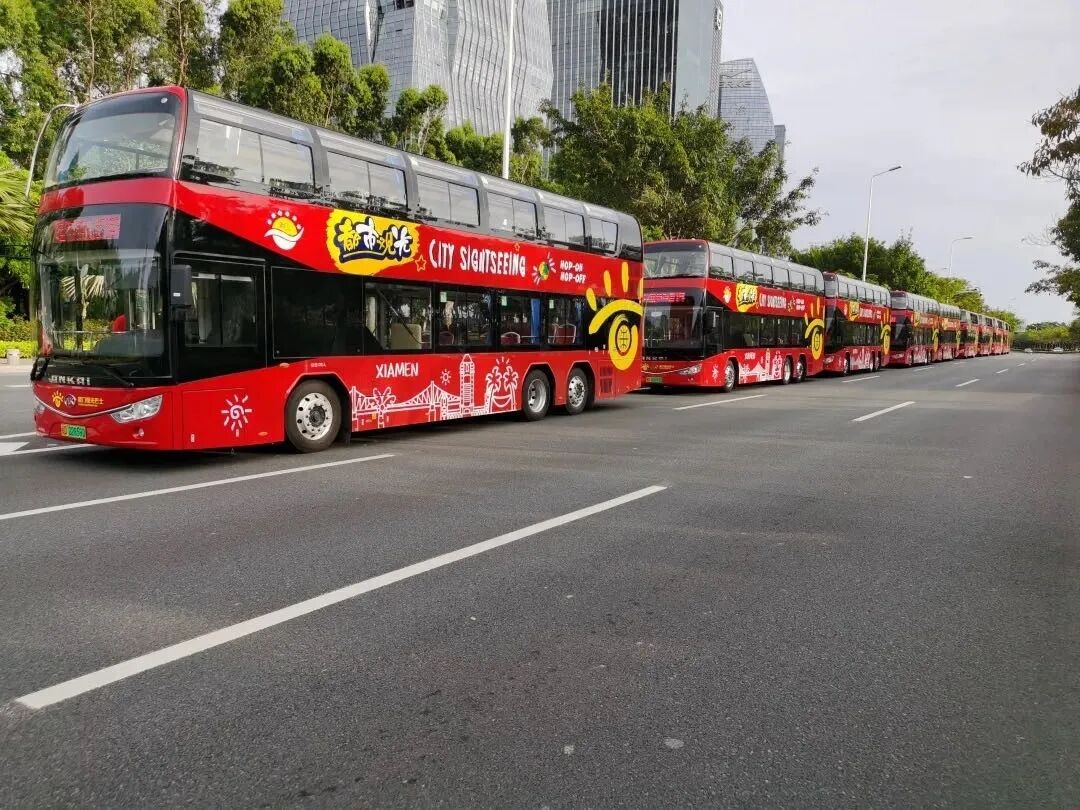 9月29日上午,厦门都市观光双层巴士“鹭岛观光旅游1线”首发仪式举行,一辆辆红色的安凯纯电动双层观光巴士从公交大厦出发,成为厦门一道靓丽的风景线。自此,厦门都市观光巴士以全新的姿态与大众相遇,开启了“全视角”的观光巴士服务。