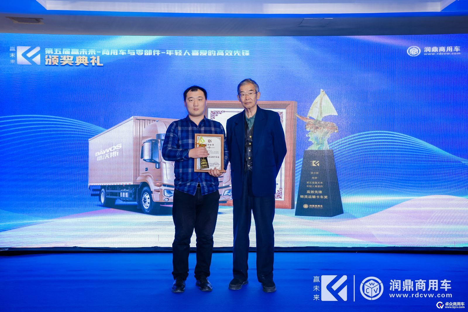 北京麦东仓储有限公司物流资深顾问冀子旺(右)为江淮1卡恺达代表颁奖