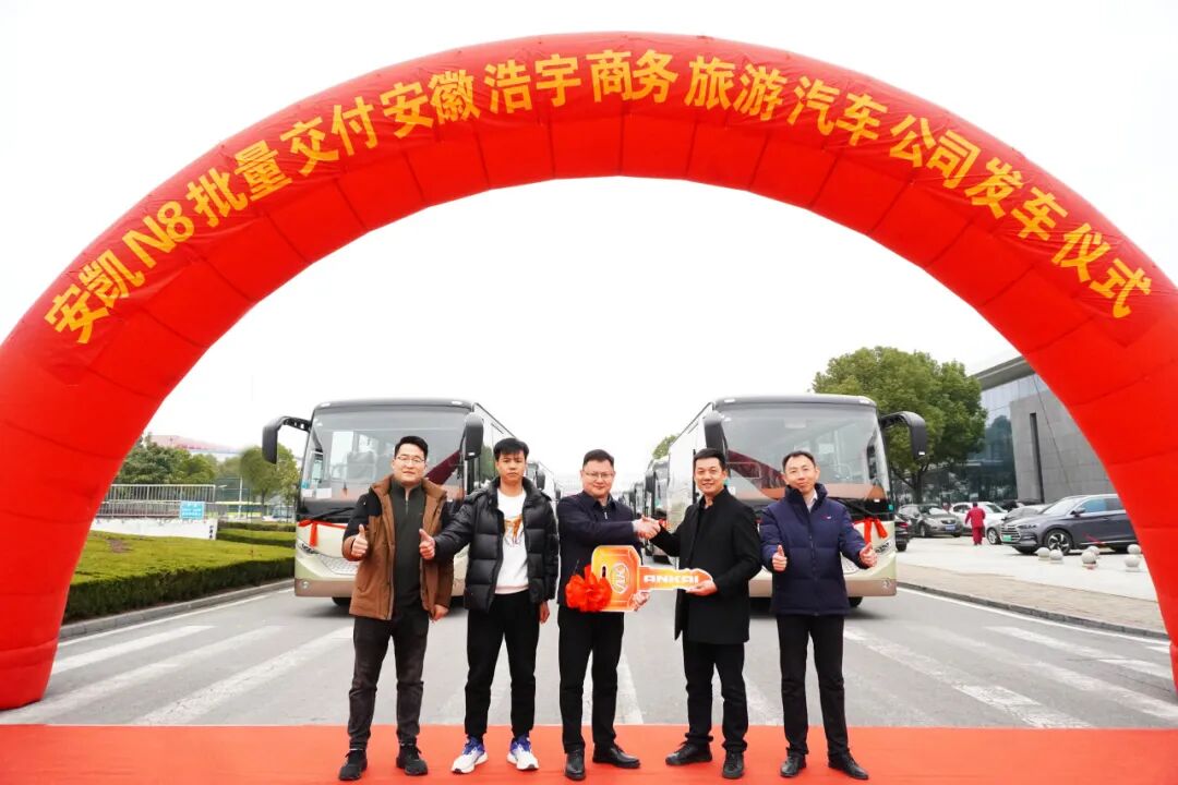 2024年2月28日,一批安凯N8豪华客车交付安徽浩宇商务旅游汽车公司(以下简称“安徽浩宇”),奏响春日发车“交响曲”。据悉,这批车交付后将用于华东地区的旅游市场,助力安徽浩宇焕新车辆服务,“备战” 春季旅游热潮。